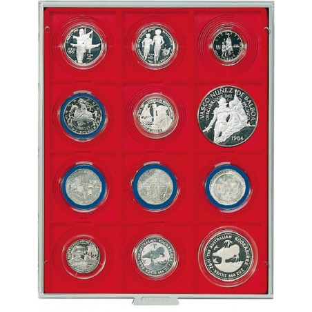 Plateau velours rouge vif à  12 alvéoles carrés pour Inletts-Box monnaies LINDNER 68x68 mm