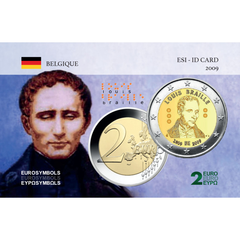 La 2€ Belgique 2009 commémore le bicentenaire de la naissance de Louis Braille.