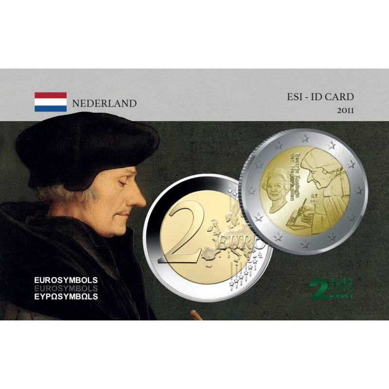 La 2€ Pays-Bas 2011 commémore le 500ème anniversaire de la publication du livre mondialement connu "L'éloge de la folie" par Erasme.