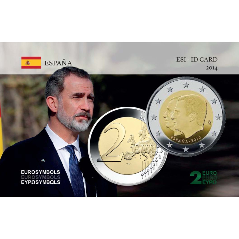 La 2€ Espagne 2014 commémore la passation du trône entre le Roi Juan Carlos Ier et son fils Felipe VI.