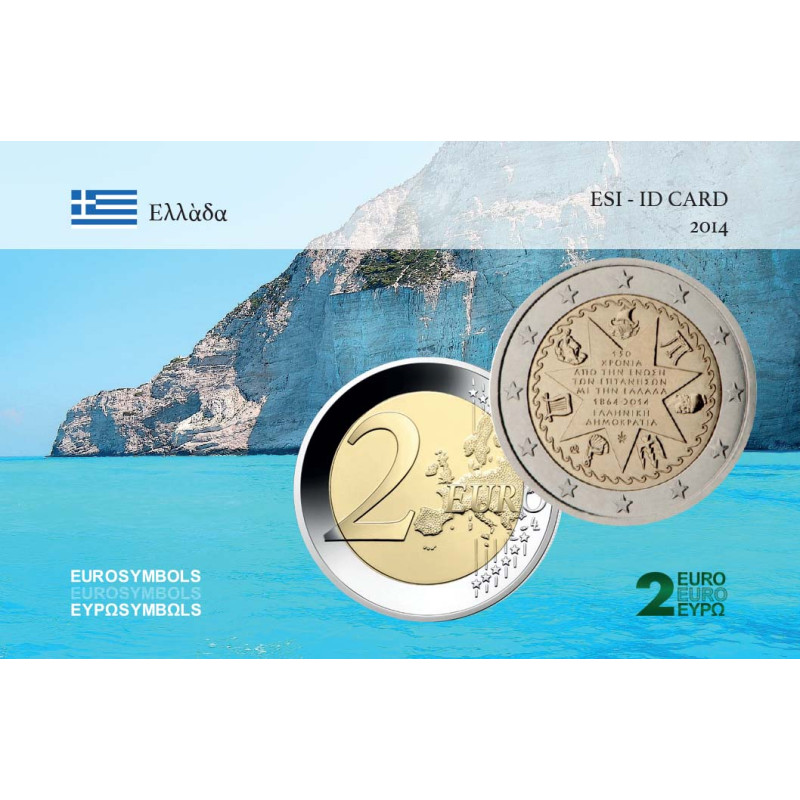 La 2€ Grèce 2014 commémore le 150ème anniversaire de l'unification des îles Ioniennes à la Grèce.