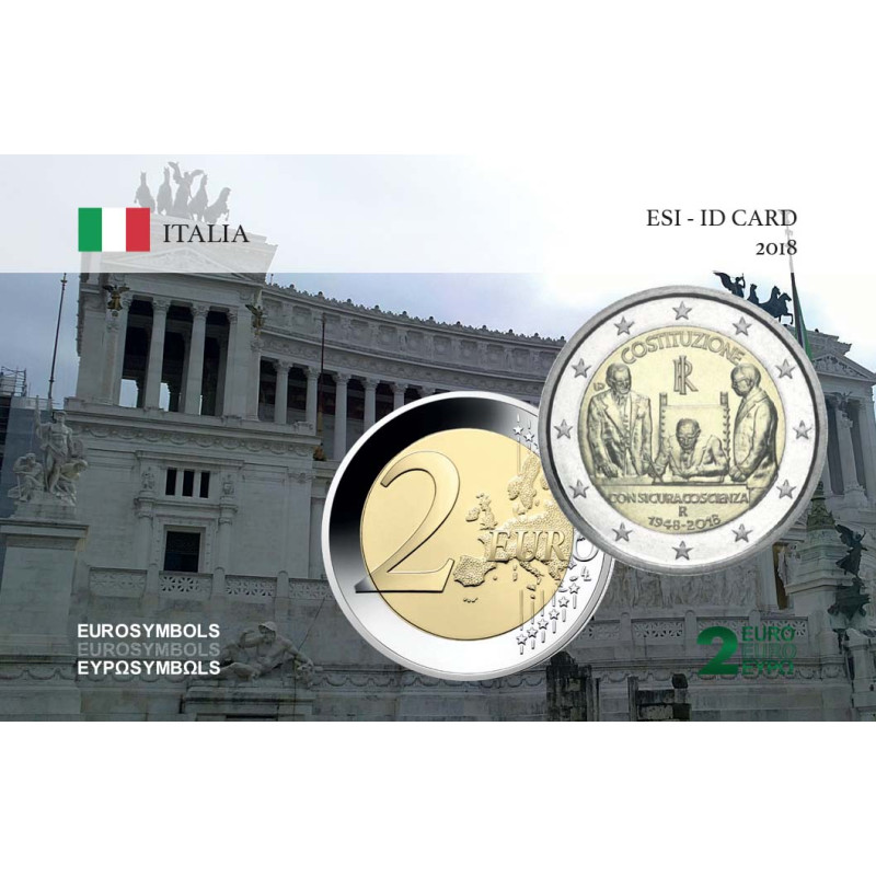 La 2€ Italie 2018 commémore le 70ème anniversaire de l'entrée en vigueur de la constitution Italienne.