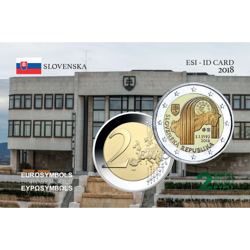 La 2€ Slovaquie 2018 commémore le 25ème anniversaire de la fin de la Tchécoslovaquie et sa création le 1 janvier 1993.