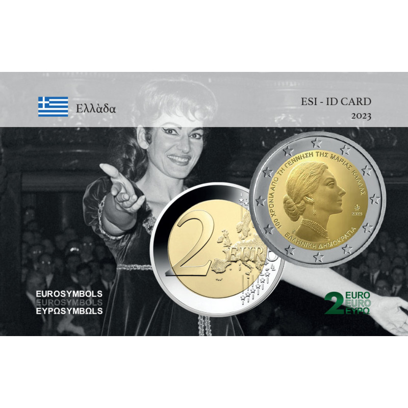 La 2€ Grèce 2023 commémore le 100ème anniversaire la naissance de Maria Callas, célèbre cantatrice Grecque.