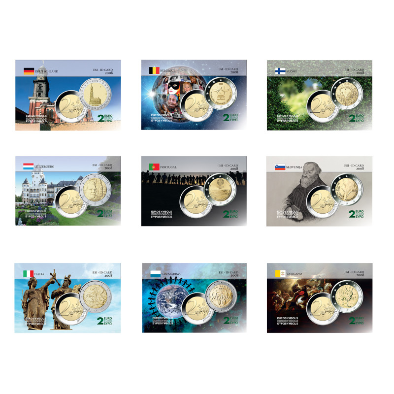 Editées à très peu d'exemplaires ! Les superbes cartes commémoratives collectors sont émises par l'EuroSymbols Institute, ce sont de véritables cartes d'identification des 2 euros commémoratives, Elles sont répertoriées et cotées sur le site officielle www.eurosymbols.org .