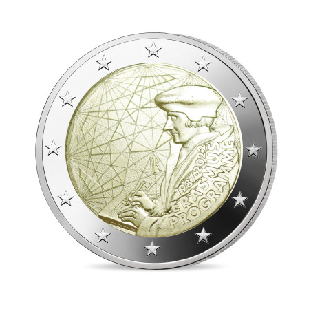 Le dessin de la pièce de 2€ commémorative des 35 ans du programme Erasmus, réalisé par Joaquin Jimenez de la monnaie de Paris, a remporté le concours organisé par la Commission Européenne !