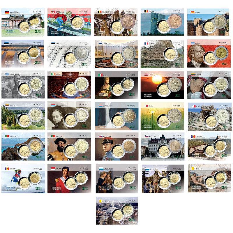 Editées à très peu d'exemplaires ! Les superbes cartes commémoratives collectors sont émises par l'EuroSymbols Institute, ce sont de véritables cartes d'identification des 2 euros commémoratives, Elles sont répertoriées et cotées sur le site officielle www.eurosymbols.org .