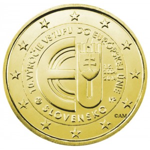 Sur le côté droit, on aperçoit la date anniversaire de l'entrée de la Slovaquie dans l'Unnion Européenne : 1.5.2004 - 2014