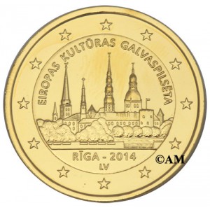 Cette pièce est la première 2 euro commémorative dorée à l'or fin 24 carats où la ville de Riga, première capitale européenne de la culture, est mise à l'honneur.