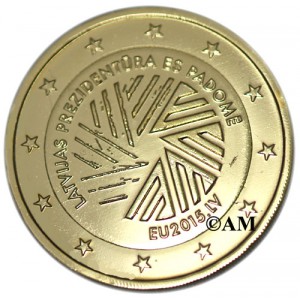 La Lettonie émet sa première pièce de 2 euro commémorative millésimée 2015. Celle-ci met à l'honneur la Présidence Lettone du Conseil de l'Union Européenne.