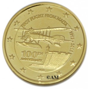 Malte a émis sa première pièce de 2 euro commémorative pour l'année 2015 qui célèbre le 100ème anniversaire du 1er vol commercial de Malte.