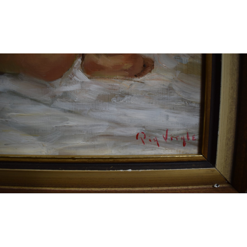 Condition: L'œuvre elle-même est en bon état, cependant, il est à noter que le cadre accompagnant l'œuvre est endommagé. Cela ajoute un élément de vécu et d'histoire à l'ensemble, témoignant des épreuves à travers lesquelles l'art et sa beauté peuvent perdurer.