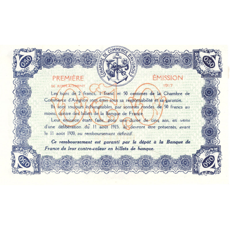 La banque de France autorisa les chambres de commerce de chaque région à émettre des billets à condition que les chambres de commerce garantissent par des fonds de contre valeurs à la banque de France leurs émissions.
