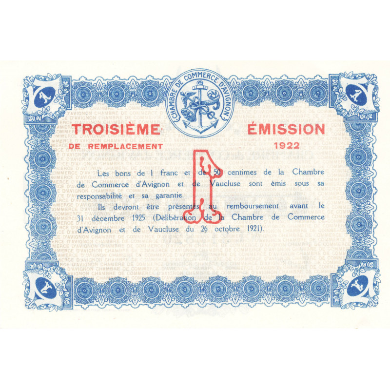 La banque de France autorisa les chambres de commerce de chaque région à émettre des billets à condition que les chambres de commerce garantissent par des fonds de contre valeurs à la banque de France leurs émissions.
