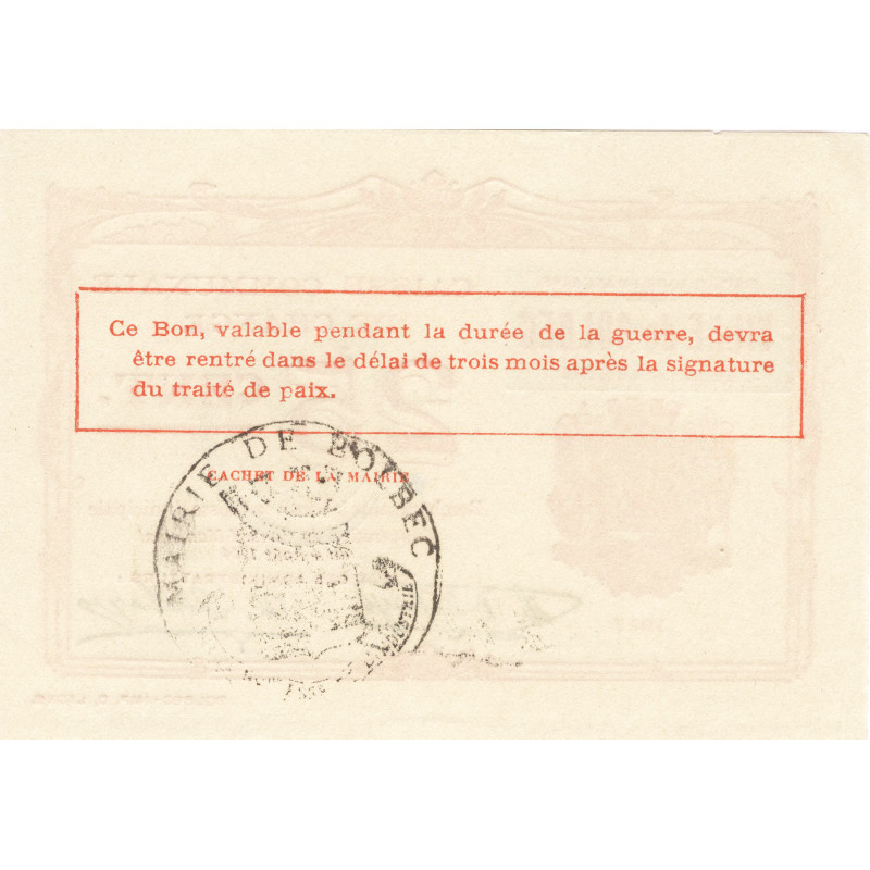 La banque de France autorisa les chambres de commerce de chaque région à émettre des billets à condition que les chambres de commerce garantissent par des fonds de contre valeurs à la banque de France leurs émissions.