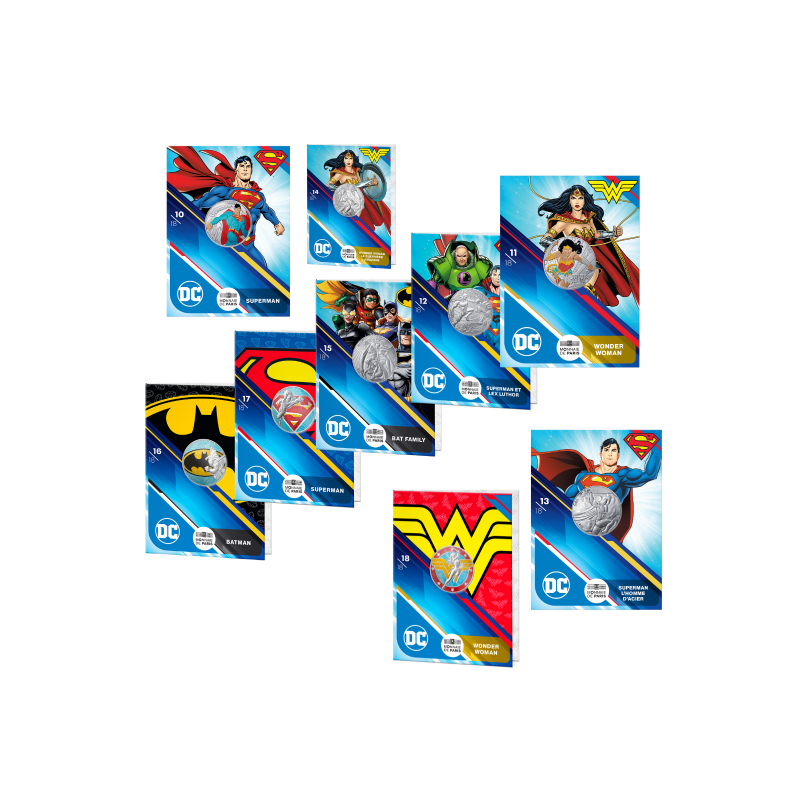En 2025, à l’occasion des 90 ans de DC COMICS, la Monnaie de Paris met à l’honneur les personnages emblématiques de cet univers. De Batman le Chevalier Noir, à Superman l’Homme d’Acier, en passant par Wonder Woman la Guerrière Amazone, Catwoman et les méchants mythiques tels que le Joker ou Harley Quinn, ils sont tous représentés sur ces monnaies.