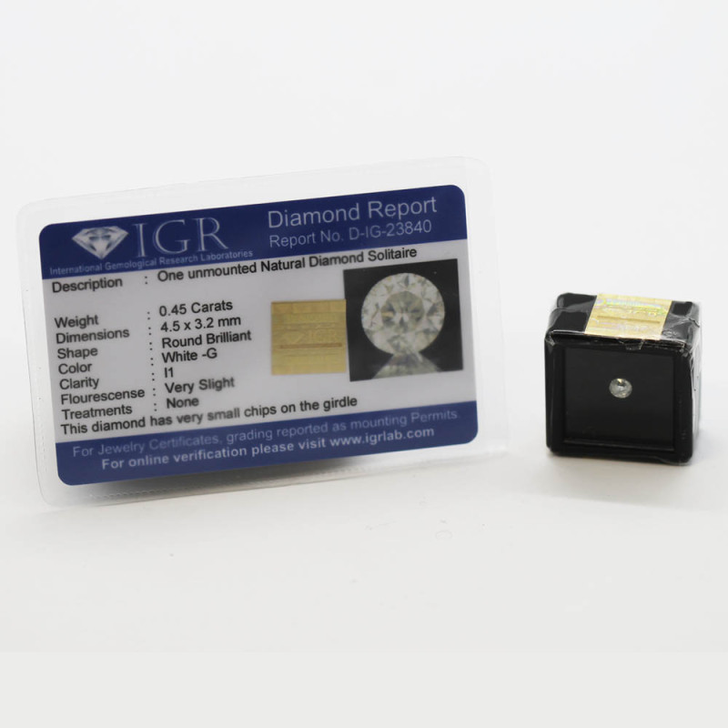 Diamant AUTHENTIQUE Naturel Solitaire Non monté - 0. 45 carats N°D-IG-23840