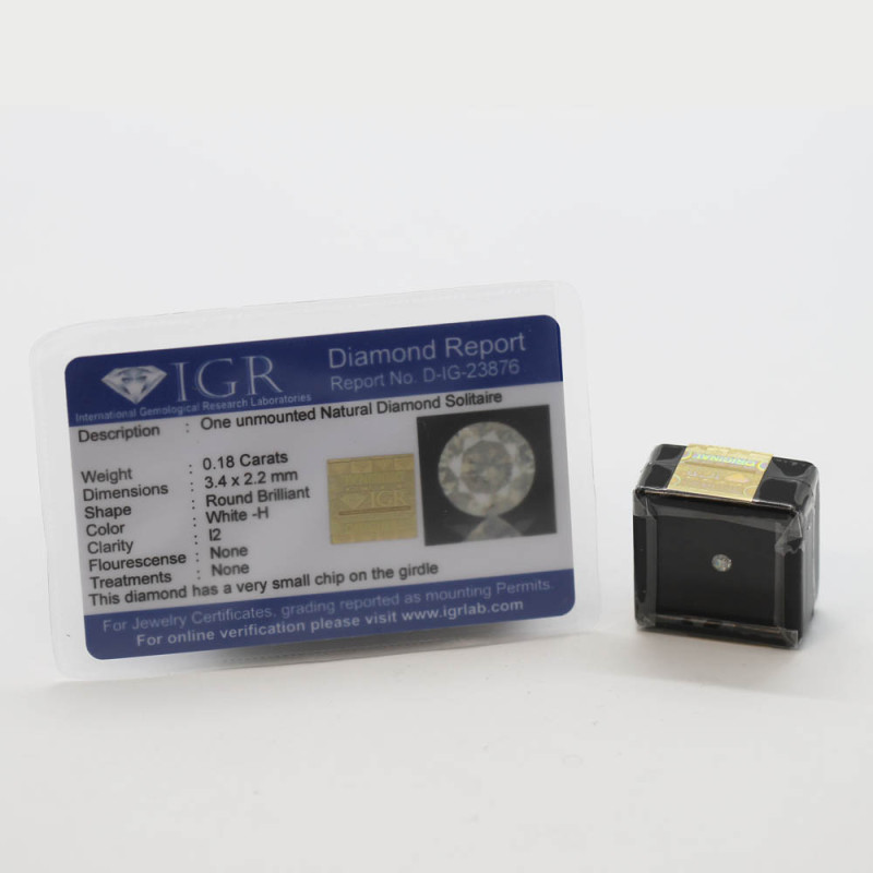 Diamant AUTHENTIQUE Naturel Solitaire Non monté - 0. 18 carats N°D-IG-23876