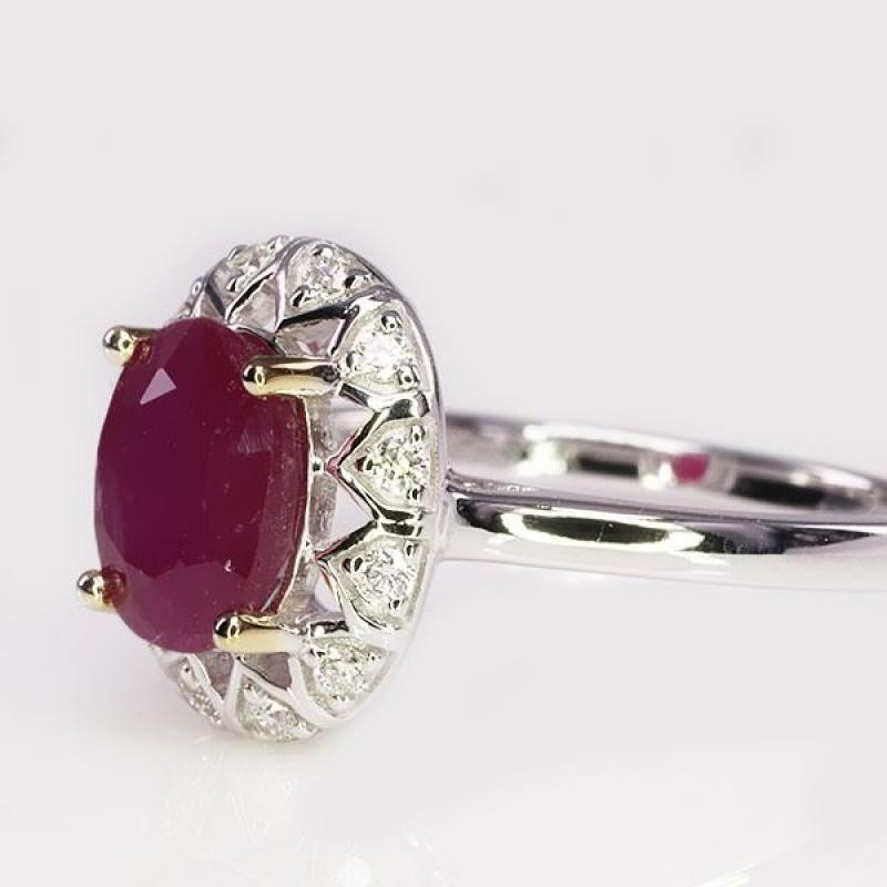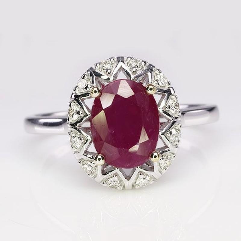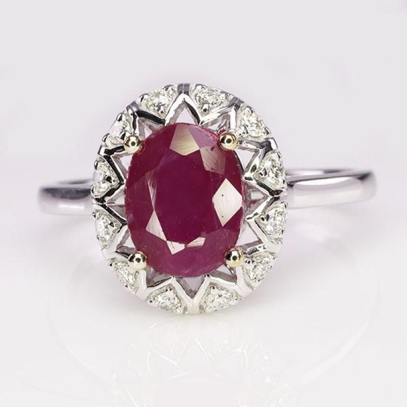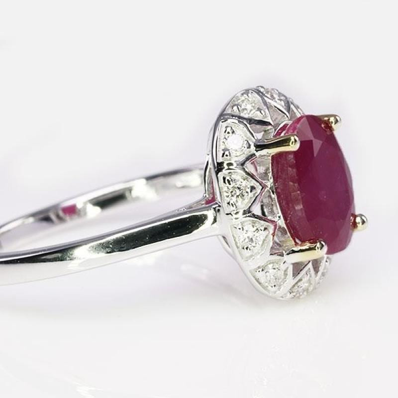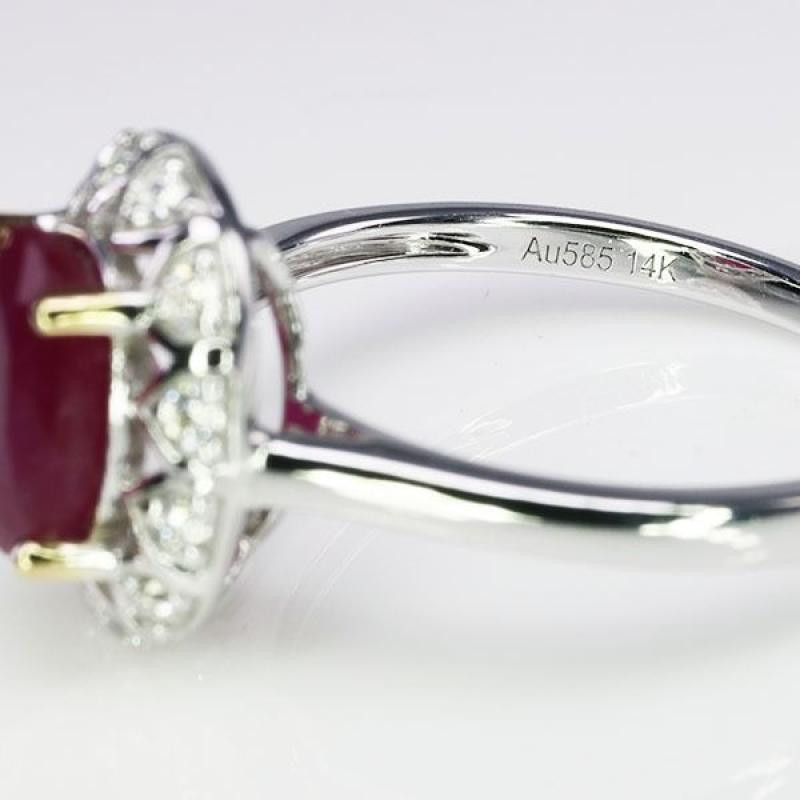 Rubis 1.73 Carats (certifié par laboratoire) et Diamants AUTHENTIQUE sur bague 14 carats Or blanc