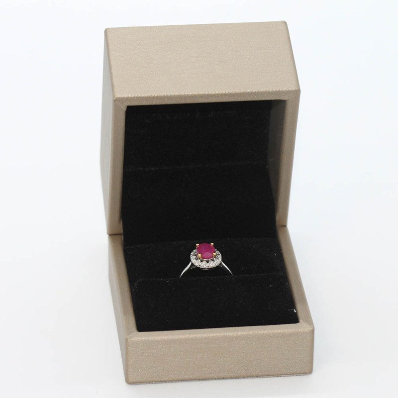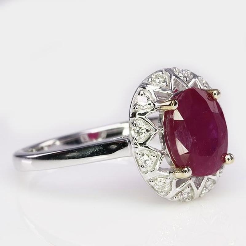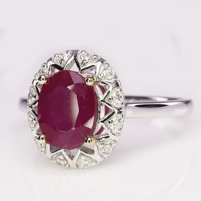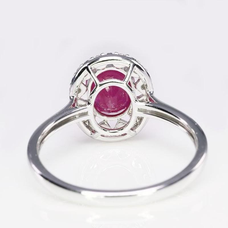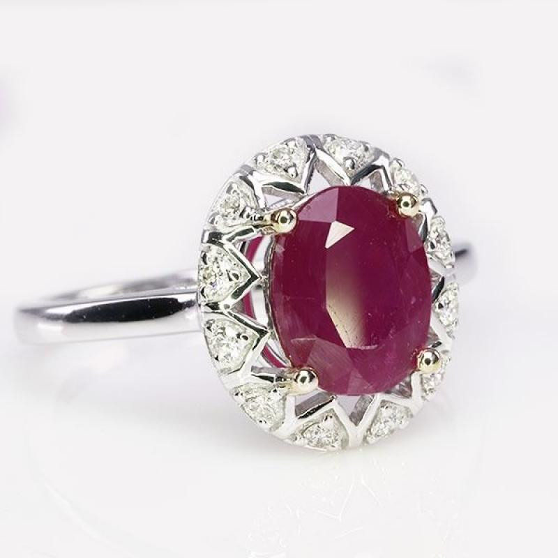 Rubis 1.73 Carats (certifié par laboratoire) et Diamants AUTHENTIQUE sur bague 14 carats Or blanc