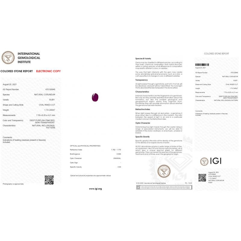Le Laboratoire: IGI est l'un des Gem Lab les plus crédibles au monde. Nous utilisons le rapport IGI car le Gem Lab mondial de première qualité peut déterminer les compétences les plus récentes en matière d'amélioration des pierres précieuses et indiscutables dans le commerce des bijoux.