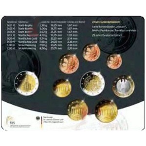 Sur l'avers des pièces de 10, 20 et 50 Cents est représente la porte de Brandebourg qui est le symbole de la ville de Berlin. Celle-ci se situe à l'Ouest de l'ancien Berlin et faisait également partie intégrante du Mur de Berlin.