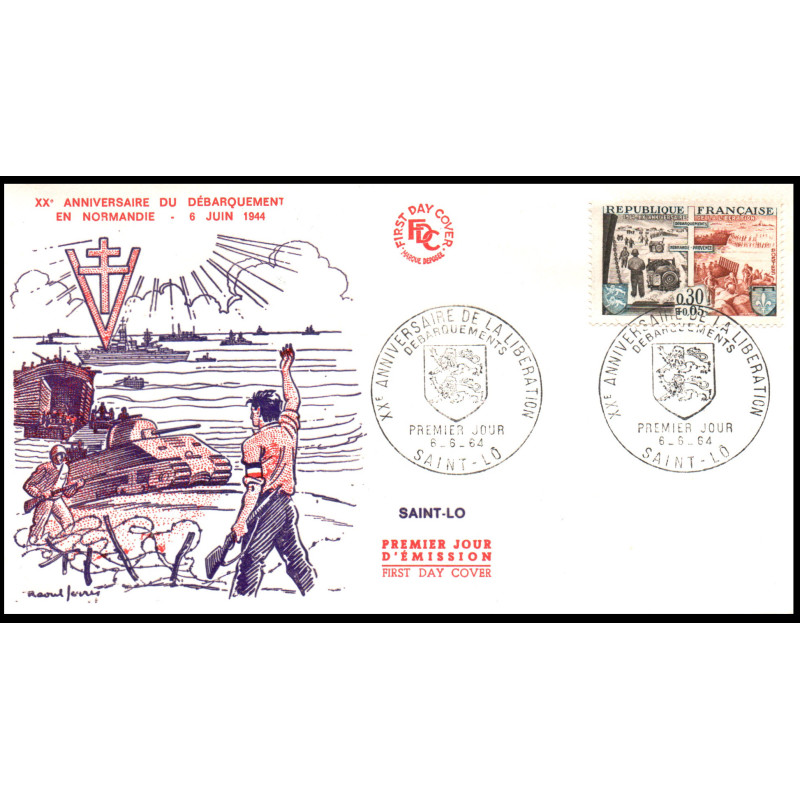 Enveloppe 1er jour 1964 - 20e anniversaire de la libération - débarquement de Normandie