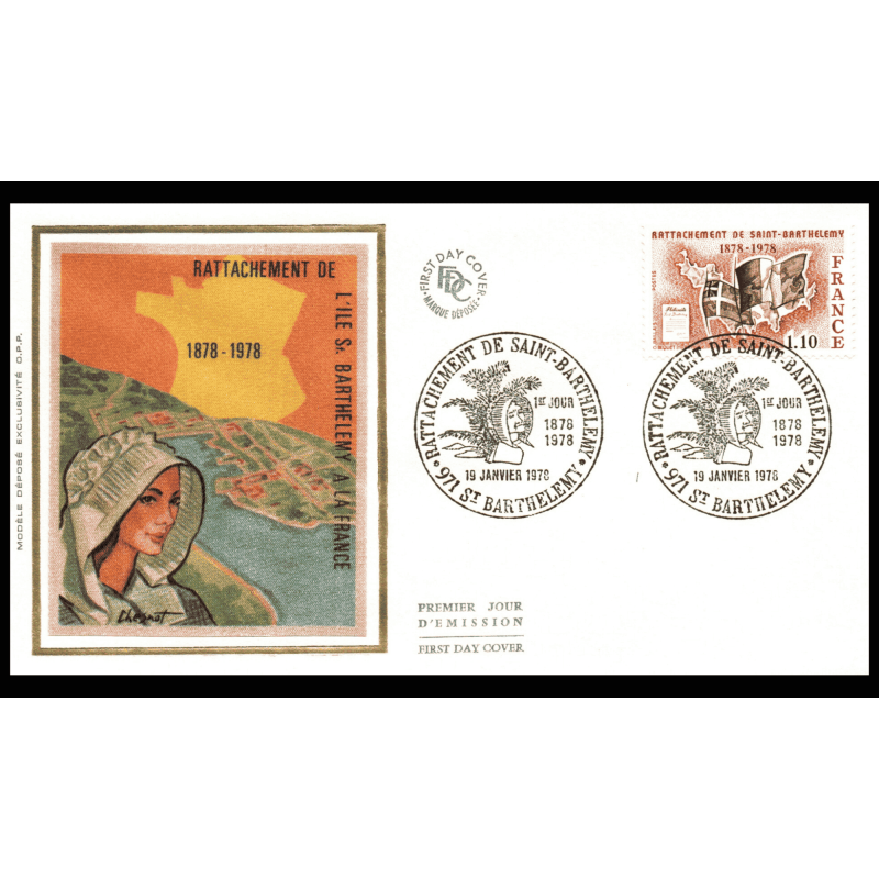 Enveloppe 1er jour 1978 - Rattachement de l'ile de Saint Barthélemy