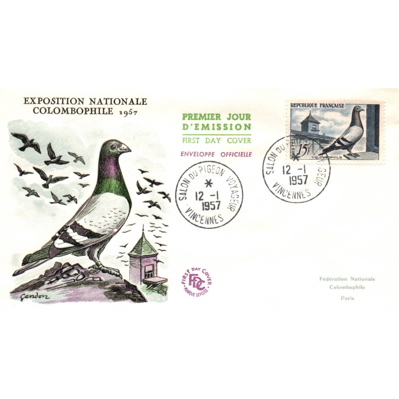Enveloppe 1er jour1957- Exposition Colombophile