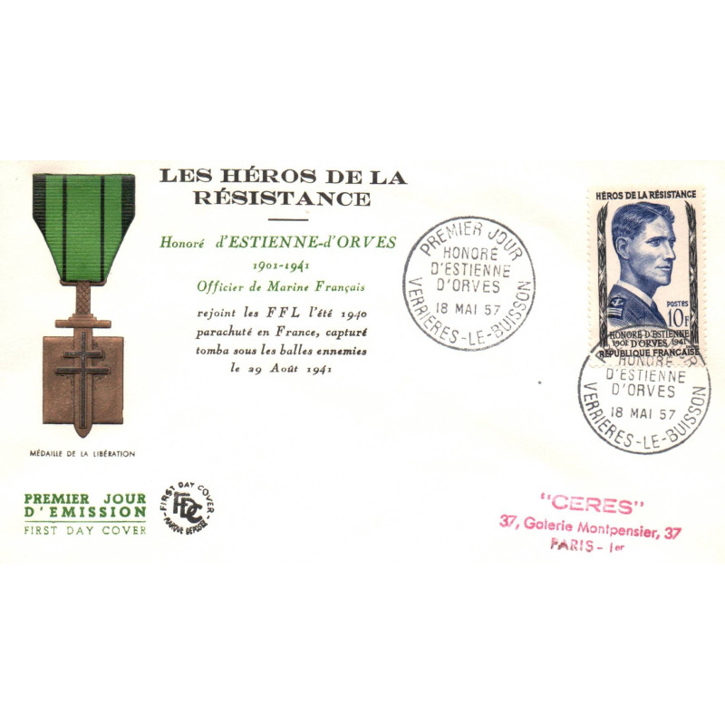 Enveloppe 1er jour1957- Héros de la résistance- Estienne d'Orves