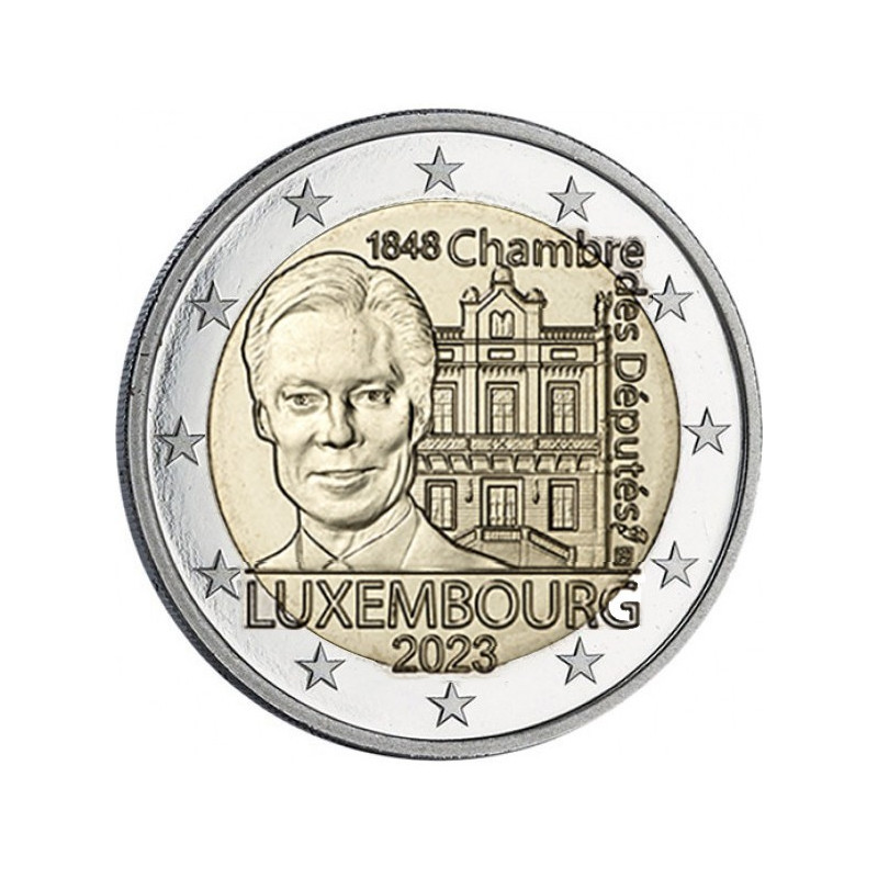 La première pièce commémorative de 2 euros est émise pour célébrer le 175e anniversaire de la Chambre des Députés du Luxembourg. Cette pièce sera disponible en différentes versions, notamment en "coincard" BU (Brillant Universel), en écrin BE (Belle Épreuve) et également à l'unité