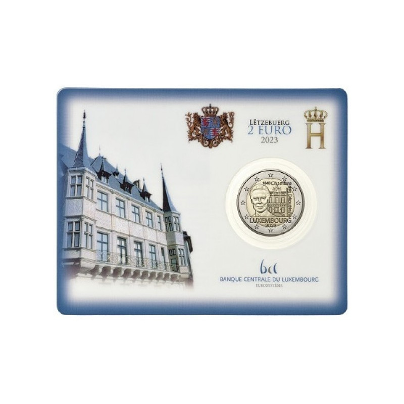 La première pièce commémorative de 2 euros est émise pour célébrer le 175e anniversaire de la Chambre des Députés du Luxembourg. Cette pièce sera disponible en différentes versions, notamment en "coin card" BU (Brillant Universel), en écrin BE (Belle Épreuve) et également à l'u La plus belle et prestigieuse des collections de pièce euro: Les coffrets officiels Brillants Universels (BU).