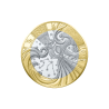 La roue des signes du zodiaque est gravée sur la couronne de couleur dorée de la monnaie. Un signe se détache particulièrement du fond par sa taille supérieure aux autres et un fond sablé, différent de celui plus lisse des autres. C’est le symbole du Poisson. La partie droite de la roue est immergée dans une vague en référence à l’eau, élément de ce signe. Deux poissons aux longues nageoires nagent en ronde dans cette eau. En arrière-plan, on reconnaît un ciel étoilé dans lequel est tracée la constellation du Poisson.