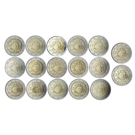 SERIE COMPLETE DES 17 PIECES DE 2 EUROS COMMEMORATIVES 10 ANS DE L'EURO