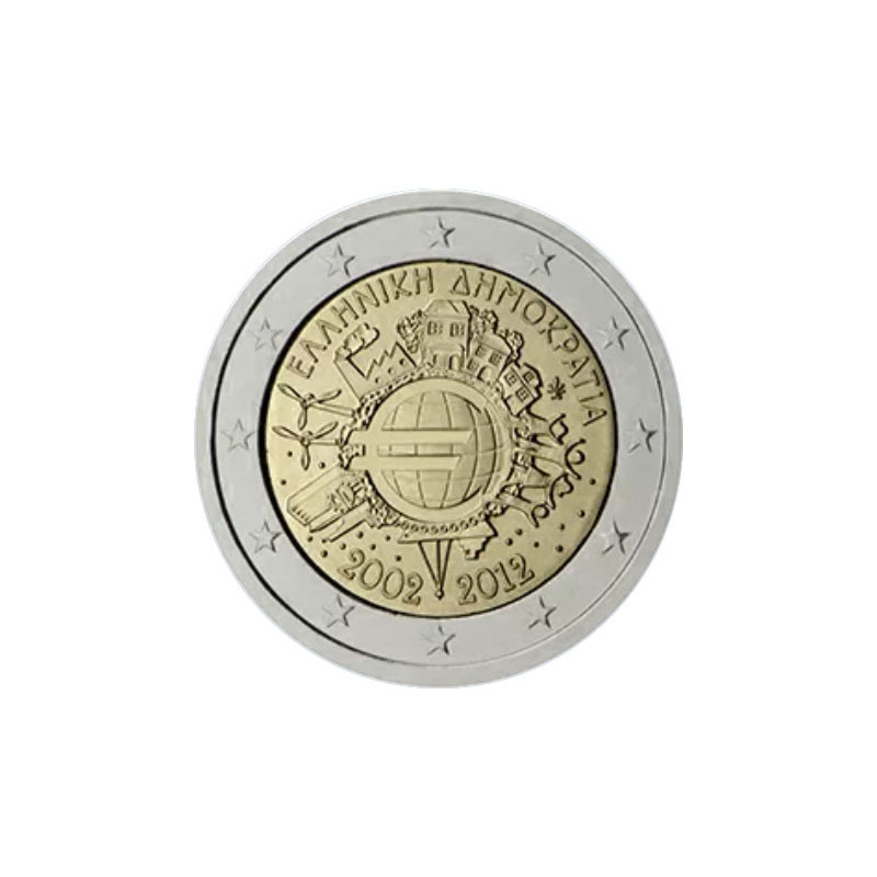 Cette pièce de 2€ est une pièce de 2 euros commémorative commune émise en 2012 par les pays de la zone euro afin de commémorer les 10 ans de la monnaie €.