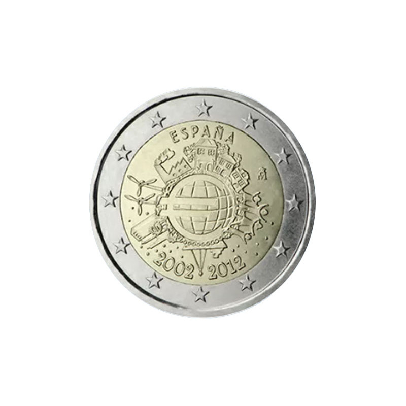 Cette nouvelle pièce de 2€ est une pièce de 2 euros commémorative commune émise en 2012 par les pays de la zone euro afin de commémorer les 10 ans de la monnaie €.