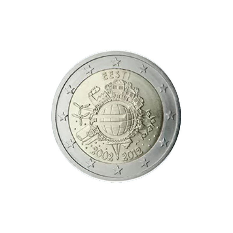 Cette nouvelle pièce de 2€ est une pièce de 2 euros commémorative commune émise en 2012 par les pays de la zone euro afin de commémorer les 10 ans de la monnaie €.
