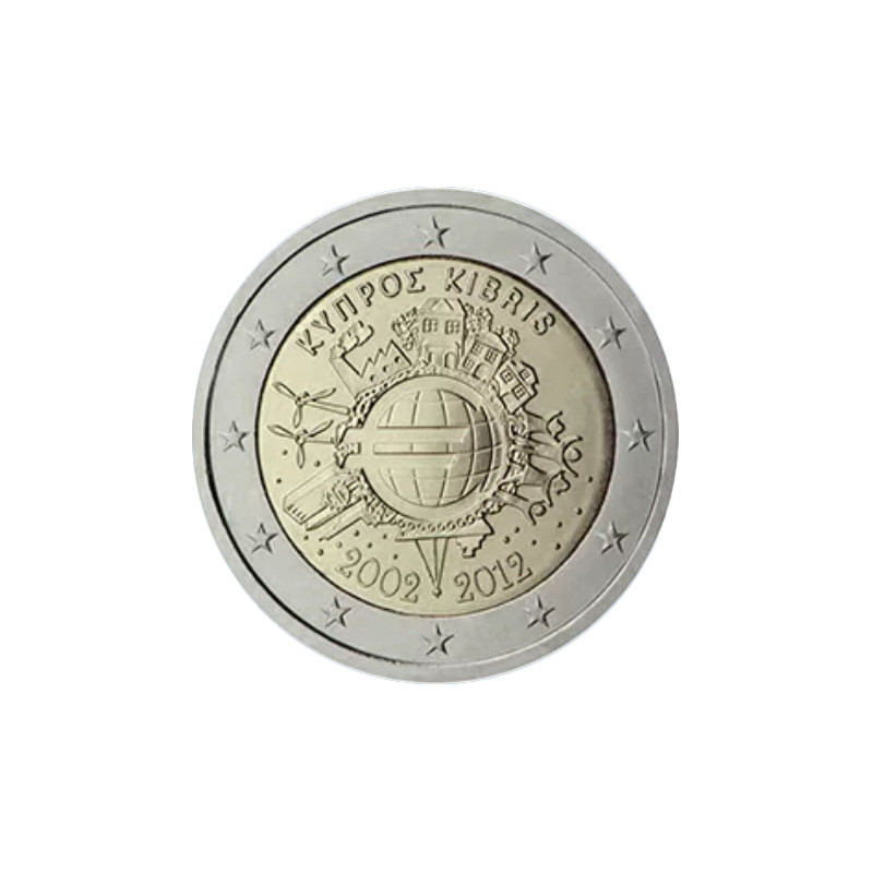 Cette nouvelle pièce de 2€ est une pièce de 2 euros commémorative commune émise en 2012 par les pays de la zone euro afin de commémorer les 10 ans de la monnaie €.