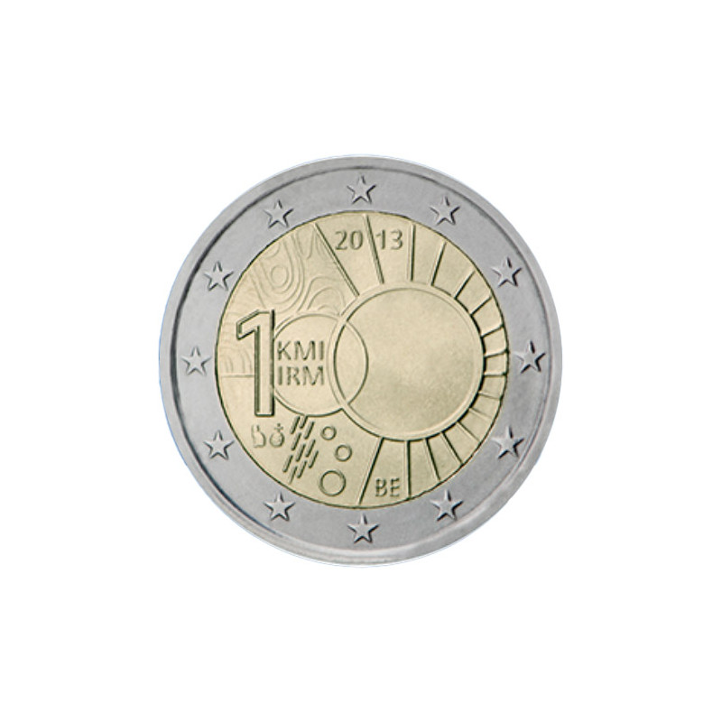 Cette pièce de commémore les 100 ans de l'Institut Royal météorologique (IRM) de Belgique.