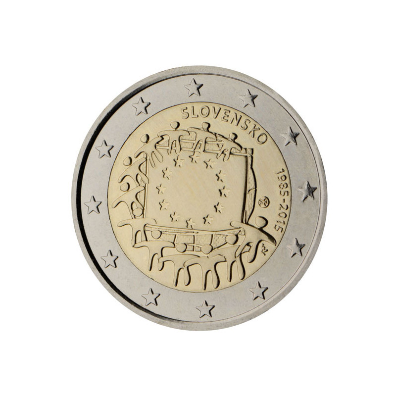 Pièce de 2 euro commémorative Slovaquie émise en commun avec tous les pays de l'euro à l'occasion du 30ème anniversaire du drapeau européen, millésimée 2015.