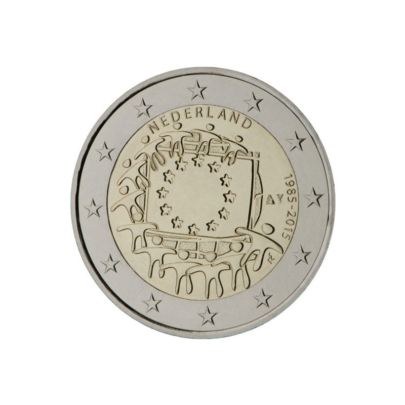 Pièce de 2 euro commémorative Pays-Bas émise en commun avec tous les pays de l'euro à l'occasion du 30ème anniversaire du drapeau européen, millésimée 2015.