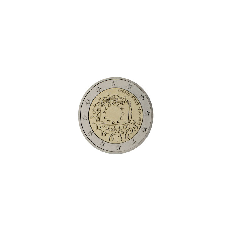 Pièce de 2 euro commémorative émise en commun avec tous les pays de l'euro à l'occasion du 30ème anniversaire du drapeau européen, millésimée 2015.