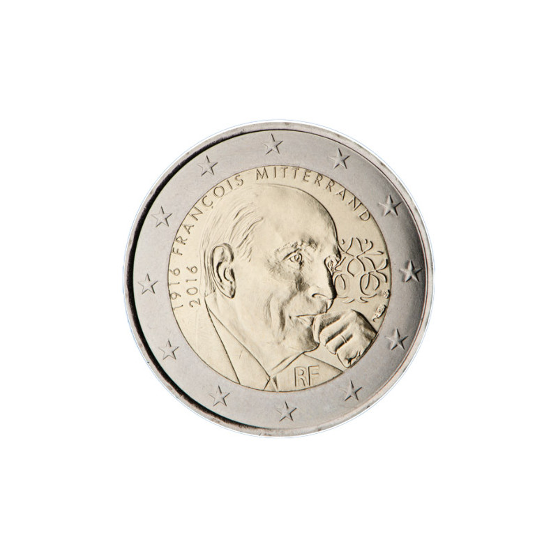 Cette pièce de 2€uro commémorative France 2016 rend hommage à un ancien Président de la République Française, François Mitterrand.