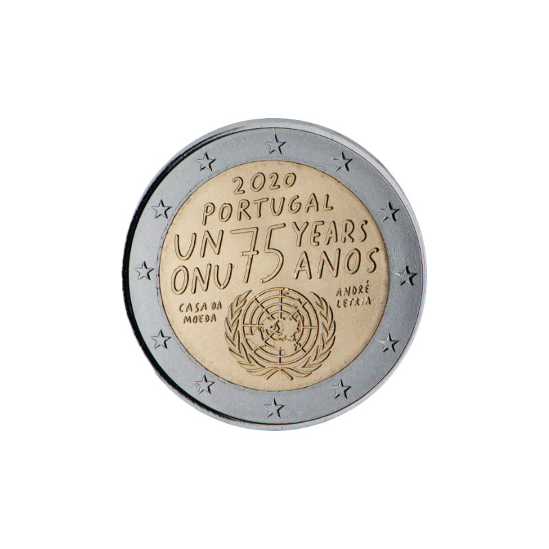 Pour marquer le 75e anniversaire de cette organisation internationale, La banque centrale Portugaise a frappé une pièce commémorative signée par l'illustrateur André Letria