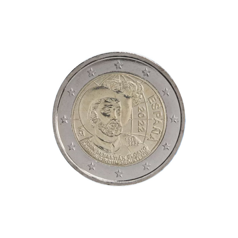 La face nationale de la pièce représente Juan Sebastián Elcano, né en 1476 à Getaria et mort dans l'océan Pacifique le 4 août 1526, est un explorateur et marin basque espagnol qui réalise la première circumnavigation du globe de 1519 à 1522, lors de l'expédition commandée à l'origine par Fernand de Magellan.