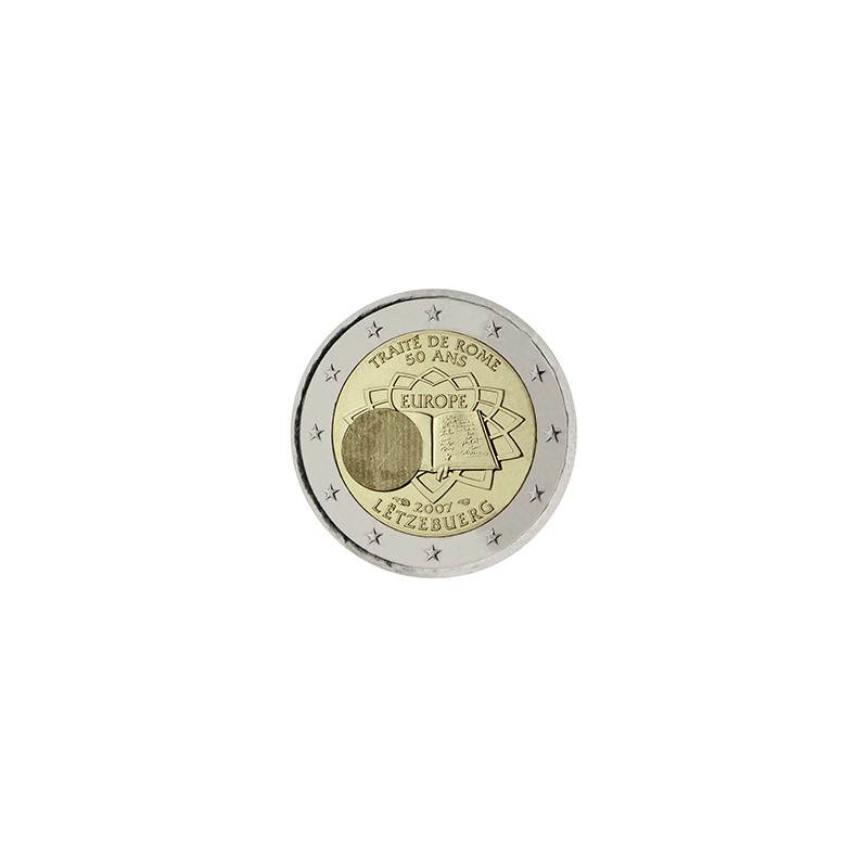 Première pièce commémorative émise conjointement par les pays de la zone euro à l’occasion du 50e anniversaire du traité de Rome.