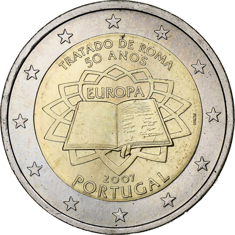 Première pièce commémorative émise conjointement par les pays de la zone euro à l’occasion du 50e anniversaire du traité de Rome.