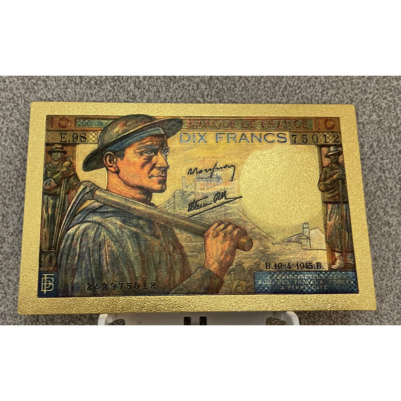 Recto : ouvrier mineur tenant un pic à l’épaule avec 2 statuts d’ouvriers.