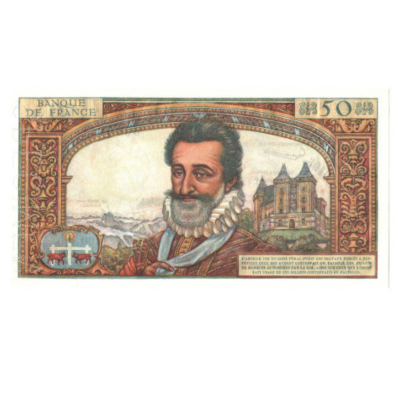 Ce billet fut émis en 1959, au lendemain de la réforme par Antoine Pinay qui institua les nouveaux Francs, d’où le libellé 50NF