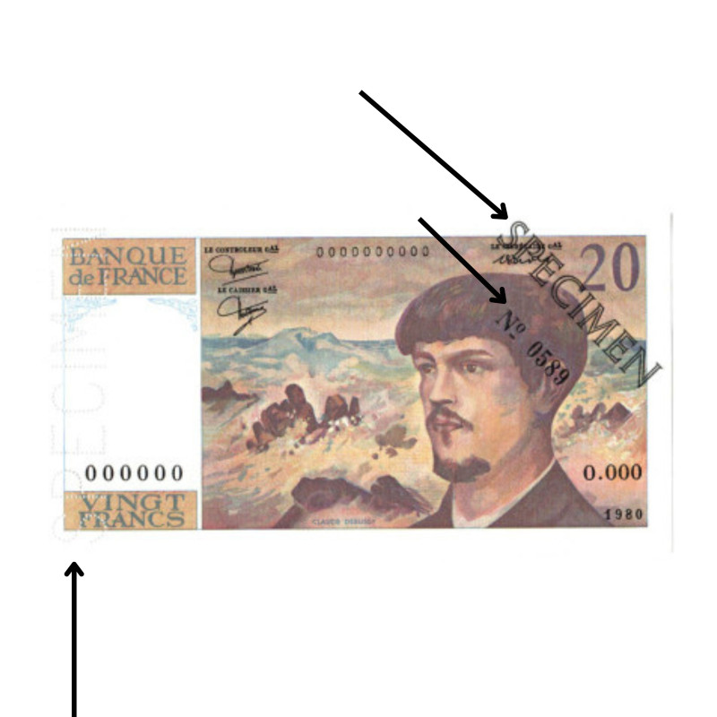 Attention : Un billet spécimen ne compte pas forcément les trois caractéristiques, mais souvent deux sur les trois.